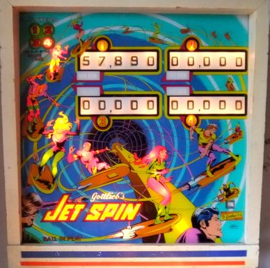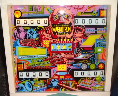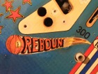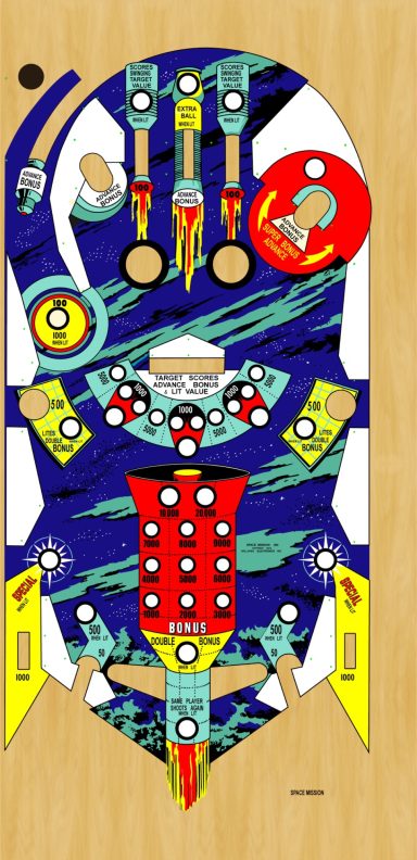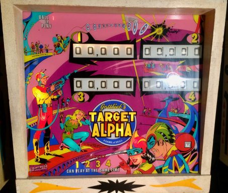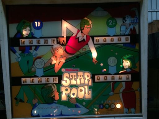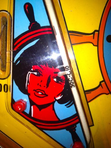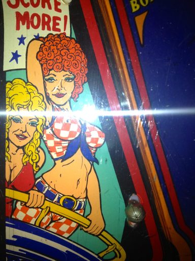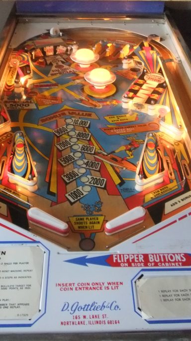 Un backglass très typé années 70, le futur vu par Gottlieb. Il faut bien avouer que le jeu est assez décevant, la bille du centre me rendait fou avec ses aller retours captifs!