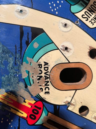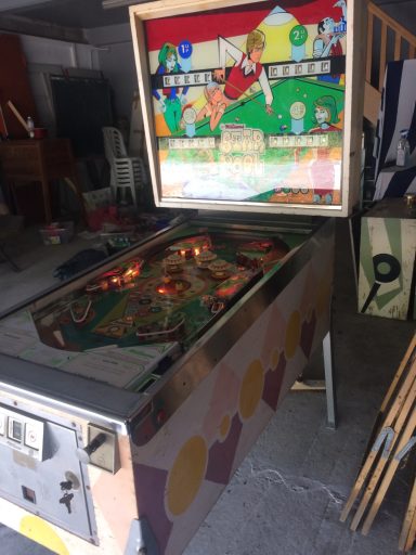 Un flipper français... J'avoue humblement ne pas être allé au bout de la restauration : il me manquait trop d'élements (pieds, etc.) à l'époque et j'avais peu de temps à consacrer à des restaurations qui sortent du cadre... je regrette, j'aodre la Polynésie et si j'en recroise un...