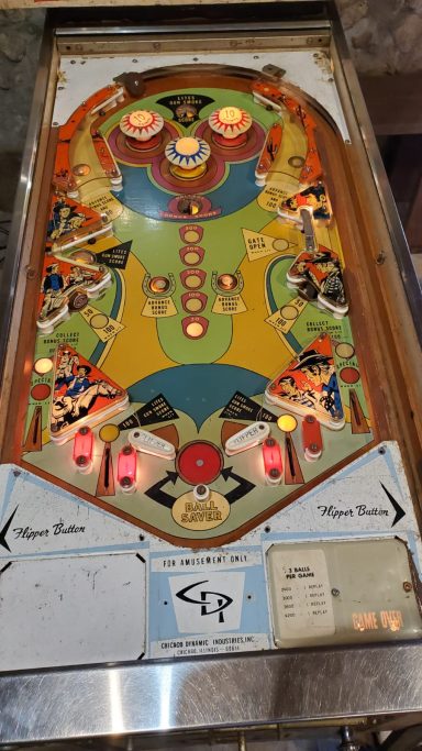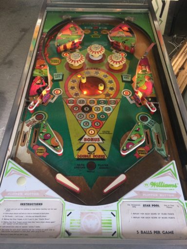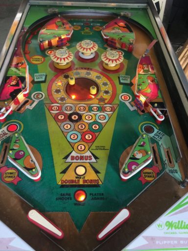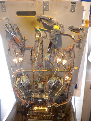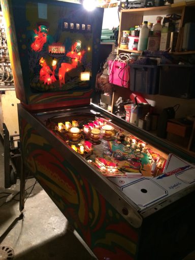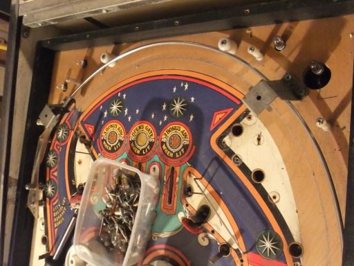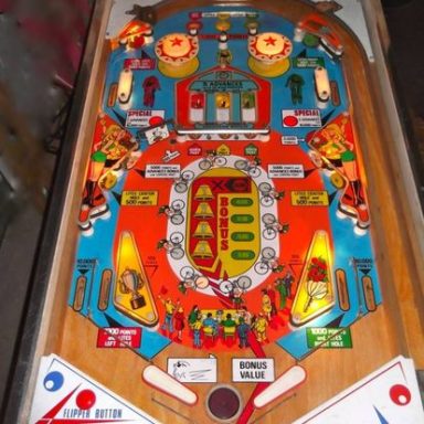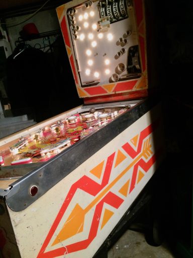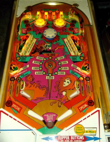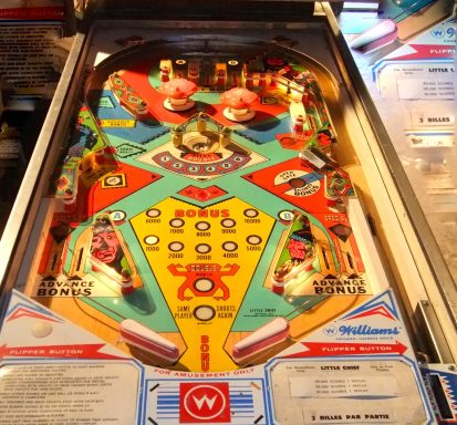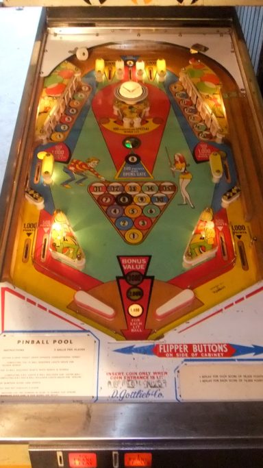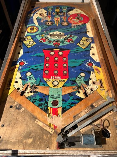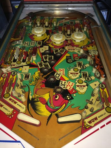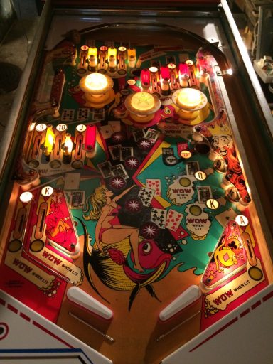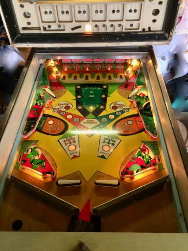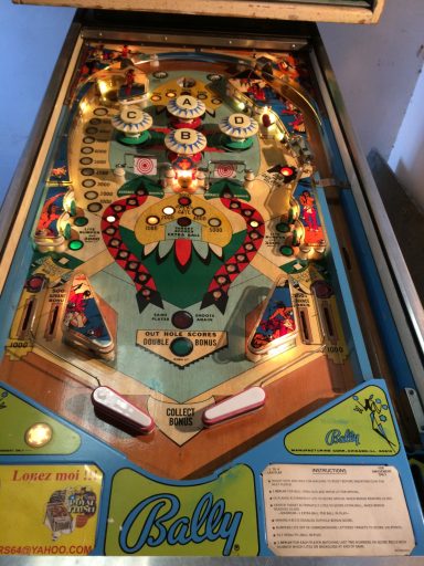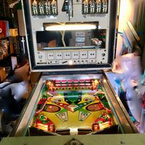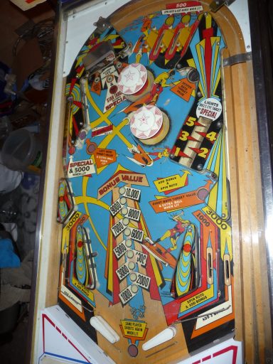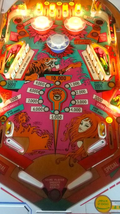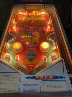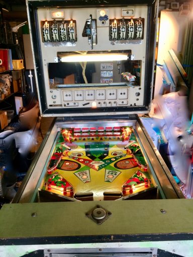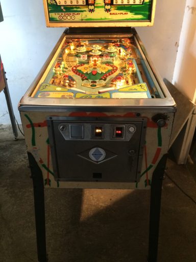 L'un des plus vieux flippers que j'ai eu a restaurer. Un régal de découvrir comment ces mécas ont évolué à partir de cette période. Un de ces fameux backglass animés comme on les aime tant!