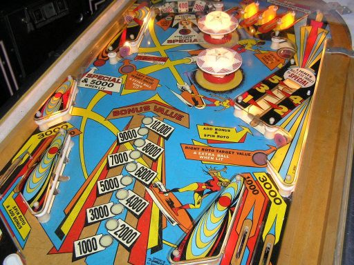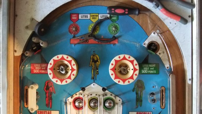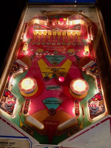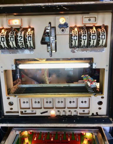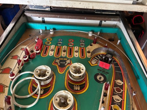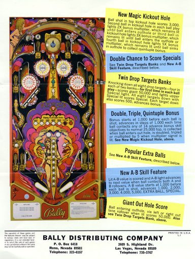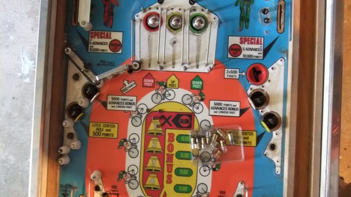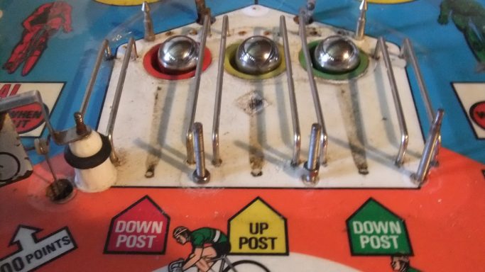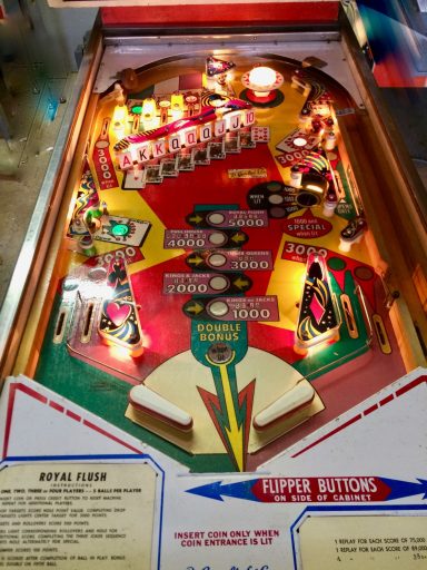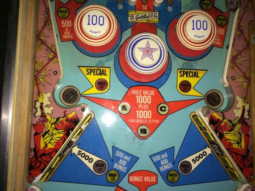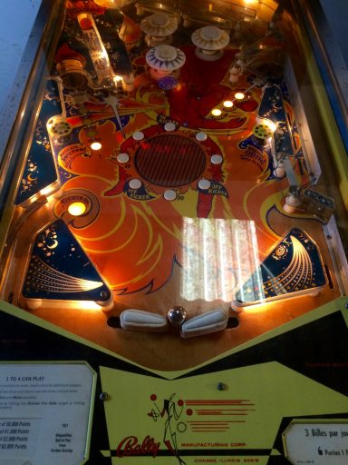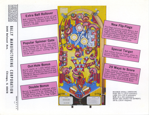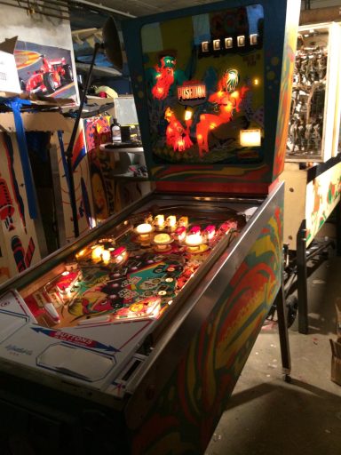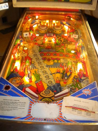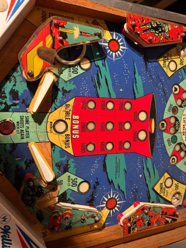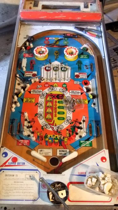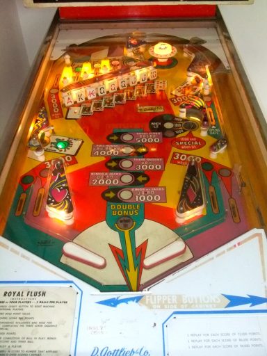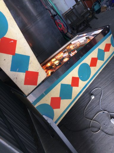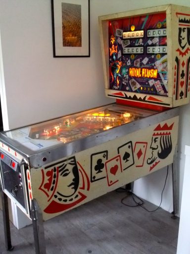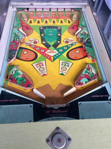 L'un des plus vieux flippers que j'ai eu a restaurer. Un régal de découvrir comment ces mécas ont évolué à partir de cette période. Un de ces fameux backglass animés comme on les aime tant!