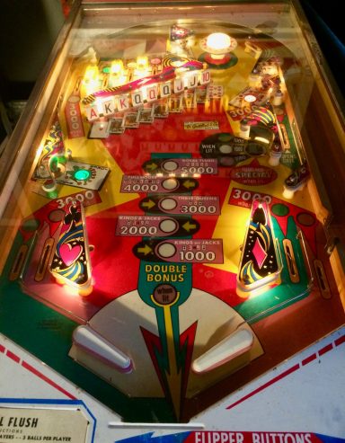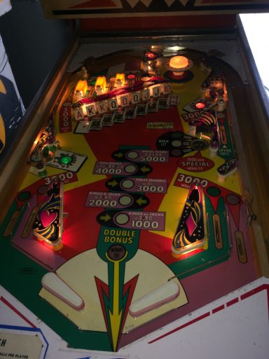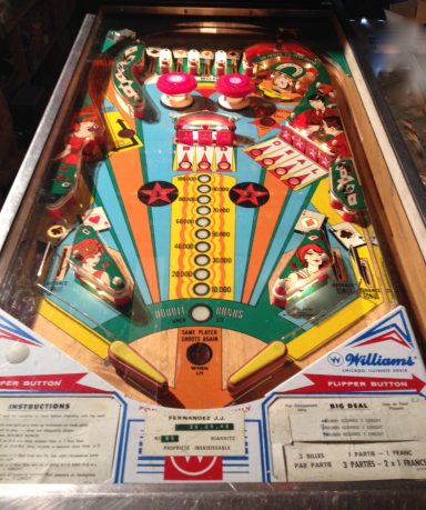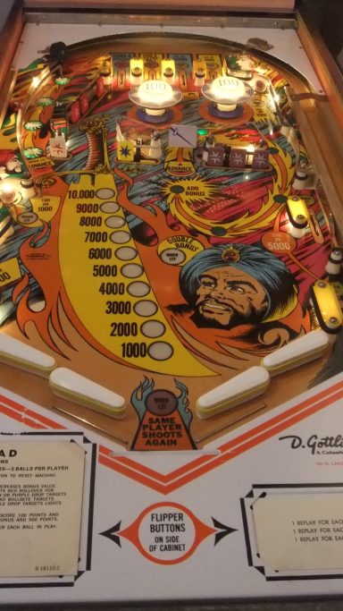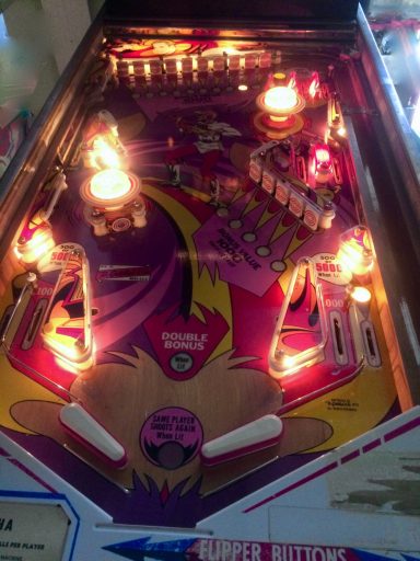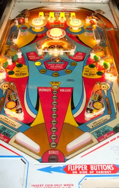 Un autre classic ders années 70, tout le monde a joué dessus. Omniprésent dans les bars! Comme tous les Gottlieb de cette génération, le rouge des bacckglass a eu tendance à pâlir, difficile d'en trouver 1 d'origine dont les couleurs sont éclatentes mais cela ne retire rien au jeu. Plateau asymétrique, des cartes à gogo, un jeu sympa auquel je n'ai jamais trop accroché...