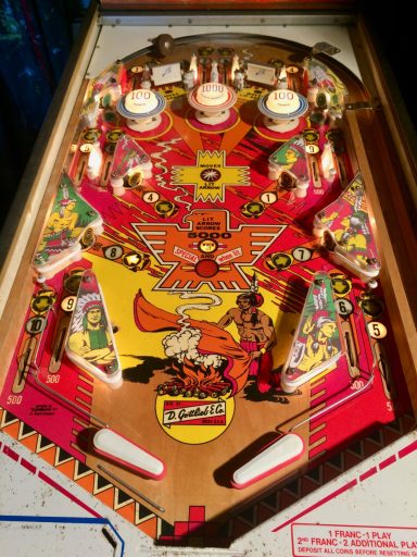 Un flipper qui m'a instantanément replongé dans mon adolescence, mon meilleur ami du moment, Didier, en avait un chez lui, offrant une alternative sympathique à mon Shériff qui lui était dans ma chambre. Le Little Chief, de chez Williams. Captivant le trou du milieu! et casse geule aussi. Flipper très réussi, tant au niveau de sa décoration que de son jeu qui, pour un méca de cette année, présente pas mal de fonctionnalités sauf, comme d'habitude ches Williams : pas de drop target!