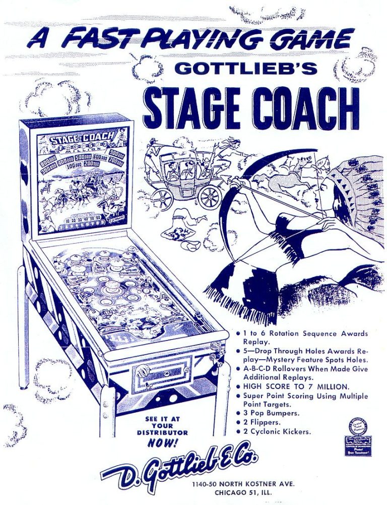 Voici un flipper qui va à l'encontre des croyances qui font penser que les jeux antérieurs aux années 70 sont inintressants. Le Stage Coach, avec son bouton "gun smoke score" et sa loterie très originale le rendent carrément craquant. Je vous laisse découvrir la vidéo pour le reste, si vous en trouvez un : foncez!