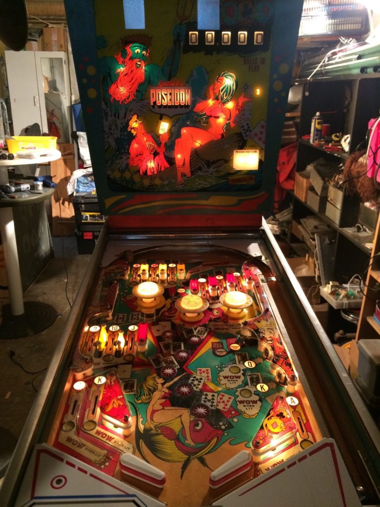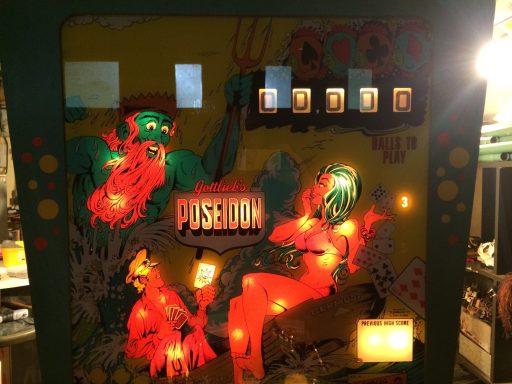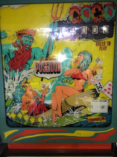 J'étais au musée de Las Vegas, Pinball Hall of Fame (1 ha de flips sous hangar...), je jette un oeil en coulisse et vois cet OVNI les tripes à l'air, le Hit the Deck (version 4 joueurs du Poseidon). J'étais envoûté, j'ai humblement apporté ma contribution à son dépannage et, une fois rentré en France, j'en ai cherché un... Las! inbtrouvable ou inabordable. Je me suis rabattu sur le Poseidon, que je suis allé chercher en Italie. Bonheur. Un jeu absolument addictif, une pièce rare! et vivent les flippers a 1 joueur!