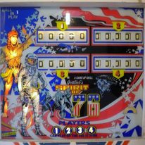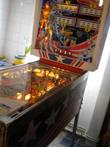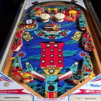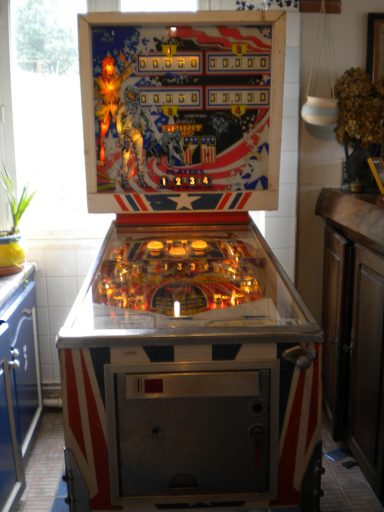 Pour moi ce flip est une oeuvre d'art. Bien sûr, il faut aimer les couleurs criardes et les US, mais ce flipper en l'honneur du bicentaine de l'indépendance est magique. Il trônait dans le bar de Berville en Roumois, ou habitait mon meilleur ami de l'époque. Autant vous dire que dès que j'ai pu en trouver un... mon second flip que j'ai restauré (après le Surf Champ), j'ai dû mettre 2 à 3 mois mais quel bonheur!