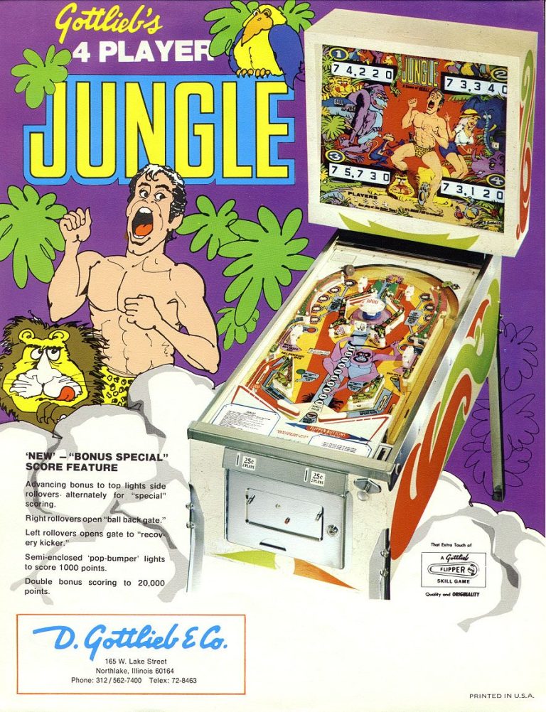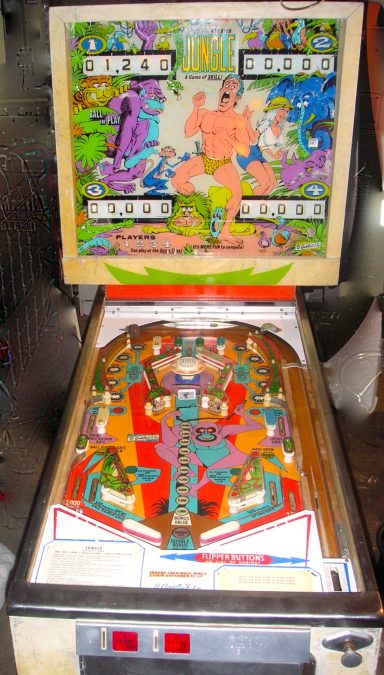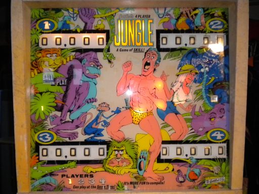 J'ai récupéré ce flipper dans un état proche de l'Ohaio. Côté mécanique, j'ai même débusqué des fils ressoudés aux mauvais endroits sur les têtes de relais (pas facile à trouver...). J'avoue de pas l'avoir payé cher (un mec sur Bordeaux qui voulait s'en débarrasser), entièrement refait mais le jeu est rébarbatif, disons le franchement. Seul truc que j'aime bien : le backglass! Sacré Tarzan!