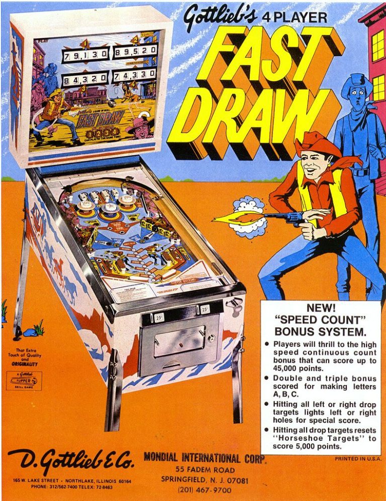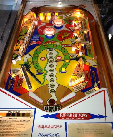 Quand je pense que ce flip est sorti en 77... j'aurais honte à la place de Gottlieb. Probablement le jeu le moins intéressant sur lequel j'ai joué, en dépit du thème du western, (encore!) que j'aime. Pas grand chose à dire, je vous laisser le loisir de défendre ce flip.