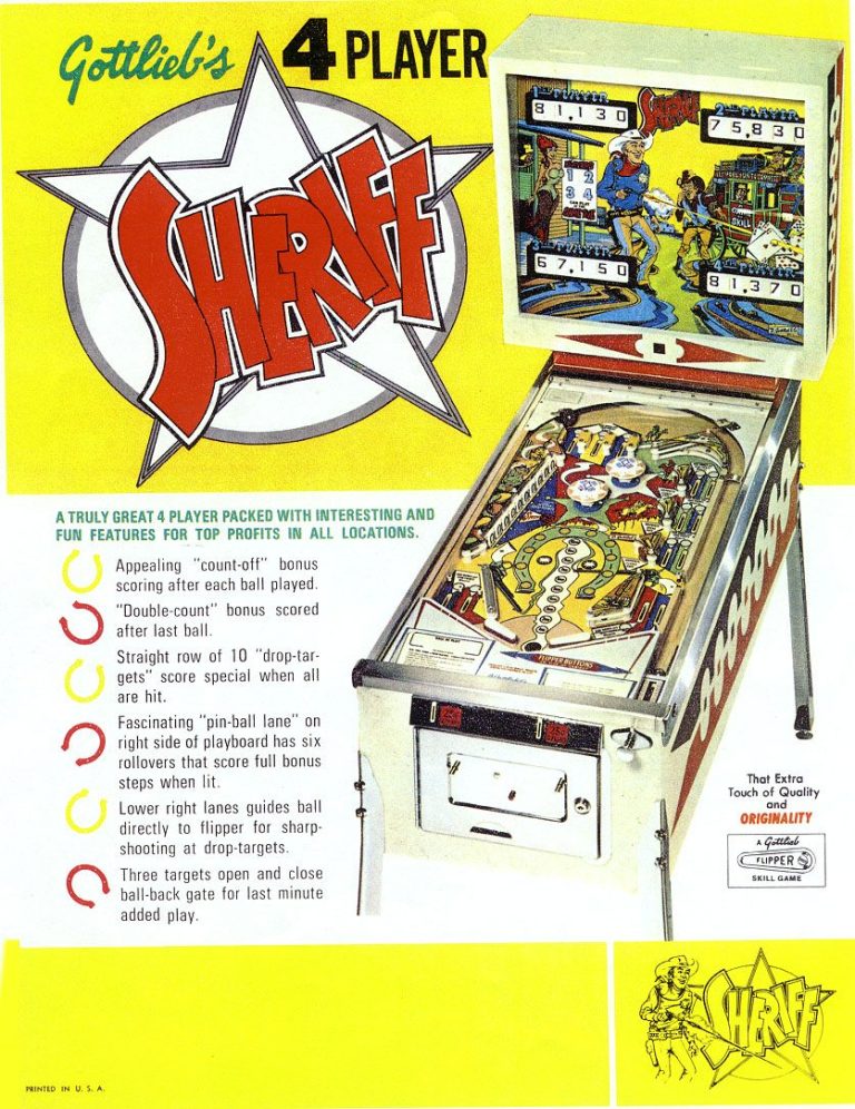 Le Sheriff pour moi est un monument, j'en avais un dans ma chambre d'ado, autant vous dire que ce n'était pas pratique pour réviser le bac .... j'ai adoré ce flip, je ne lui reproche que l'absence d'extra ball. j'adorait "ouvrir le capot" et me souviens m'extasier devant la mécanique sans oser y toucher. Chose faite désormais!