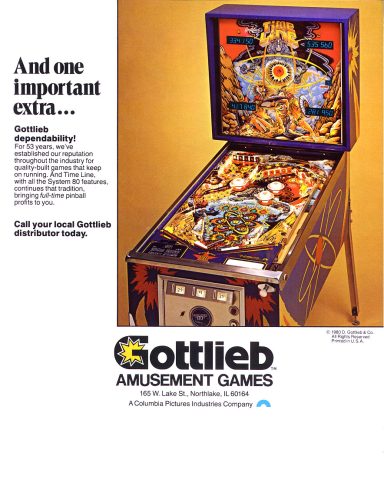 Voici probablement un des jeux les plus aboutis de Gottlieb. Si le design est discutable (il faut aimer la version américaine de la mythologie romaine), le jeu est très complet, super aéré, à la fois technique et ludique grâce à ses deux rangés de drop targets... bref, vous ne vous lasserez pas de jouer dessus, foncez! et si je vous dis qu'un membre du bureau de notre association a rencontré son conjoint en jouant dessus...