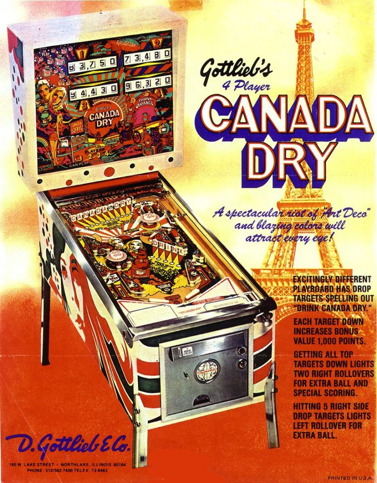 Un flipper uniquement produit pour le maché français, qui accompagna le lancement de la boisson éponyme Canada Dry : "ca en a la couleur..."!!! Désigné sur les bases du Target Alpha, un jeu assymétrique avec un nombre extraordinaire de targets (10 + 5)!, 4 flippers, 2 possiblités d'obenir l'extra ball. Bref tout ce qu'il faut pour faire un bon flip.